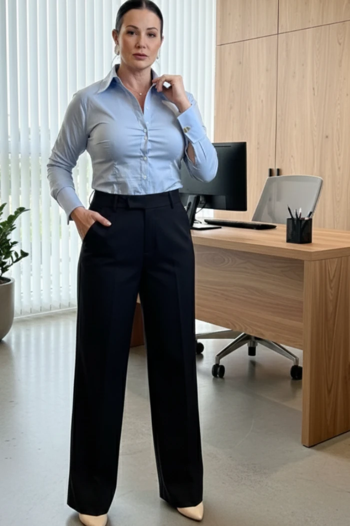 • Tecido leve, macio e super fácil de passar, perfeito para longos dias de trabalho.
